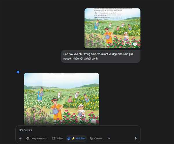 “Bạn hãy xoá chữ trong hình, vẽ lại nét và đẹp hơn. Nhớ giữ nguyên nhân vật và bối cảnh.