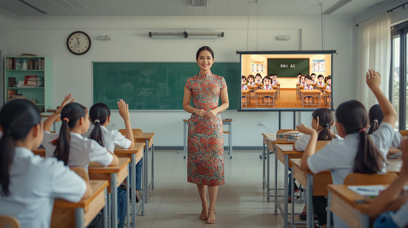 Giữ vững tương tác thực: AI chỉ là màn hình, bạn mới là linh hồn của lớp học. Hãy dùng AI để có thêm thời gian đi xuống từng bàn, cầm tay uốn nắn nét chữ cho học sinh, thay vì đứng trên bục giảng để vận hành các phần mềm.